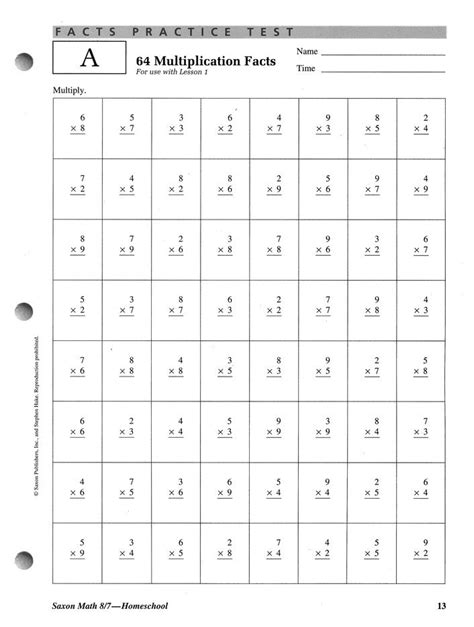 Read Online Saxon Math Facts Practice Test Reader
